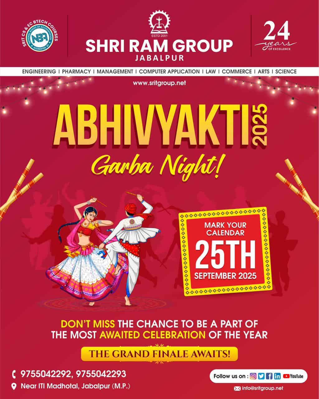 Shri Ram Group is proud to host Abhivyakti (Garba Event) on 25th September 2025.